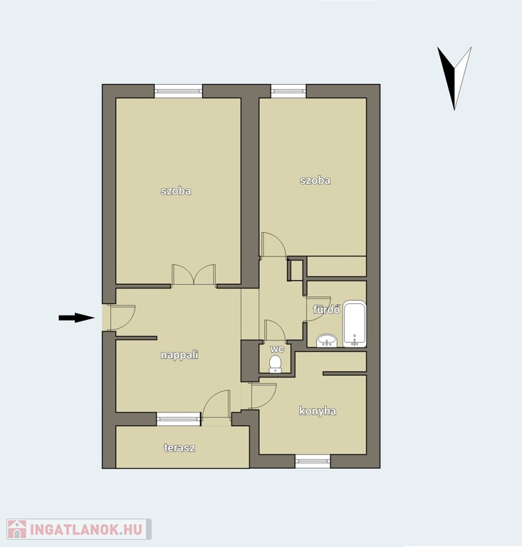 - 2 szoba+nappali, konyha, fürdőszoba, WC, előszoba, erkély, pince