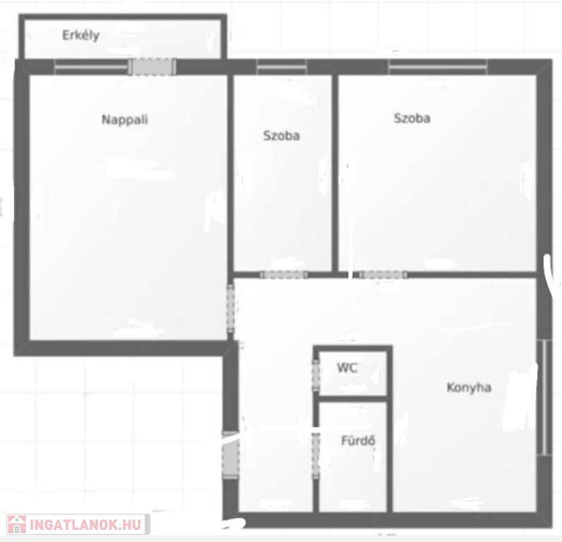 A fürdőszoba és a WC külön helyiségben található.