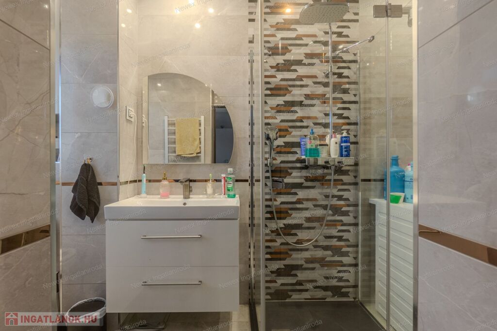 A fürdőszoba 2 éve teljes felújításon esett át, ahol elektromos padlófűtés is kiépítésre került.