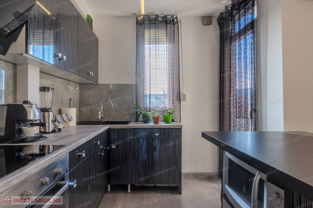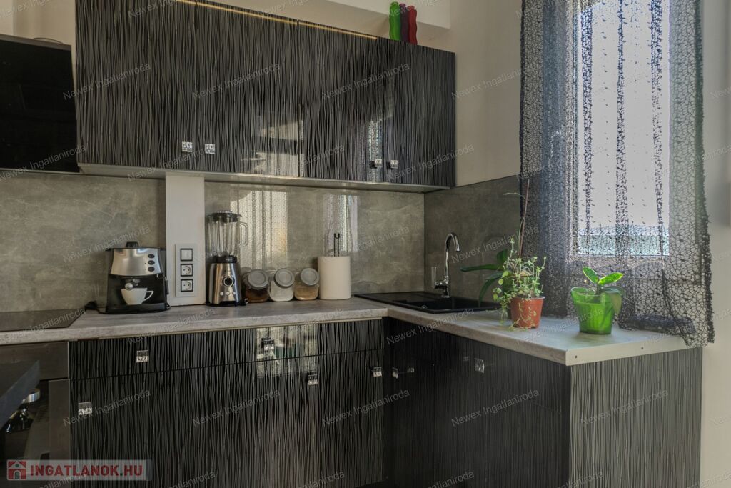 A lakásban 10 cm vastag szigetelt gipszkarton álmennyezet, felújított víz- és villanyhálózat, légkondicionáló és újonnan kialakított konyha található. A műanyag nyílászárók szigeteltek, redőnnyel és szúnyoghálóval ellátott.