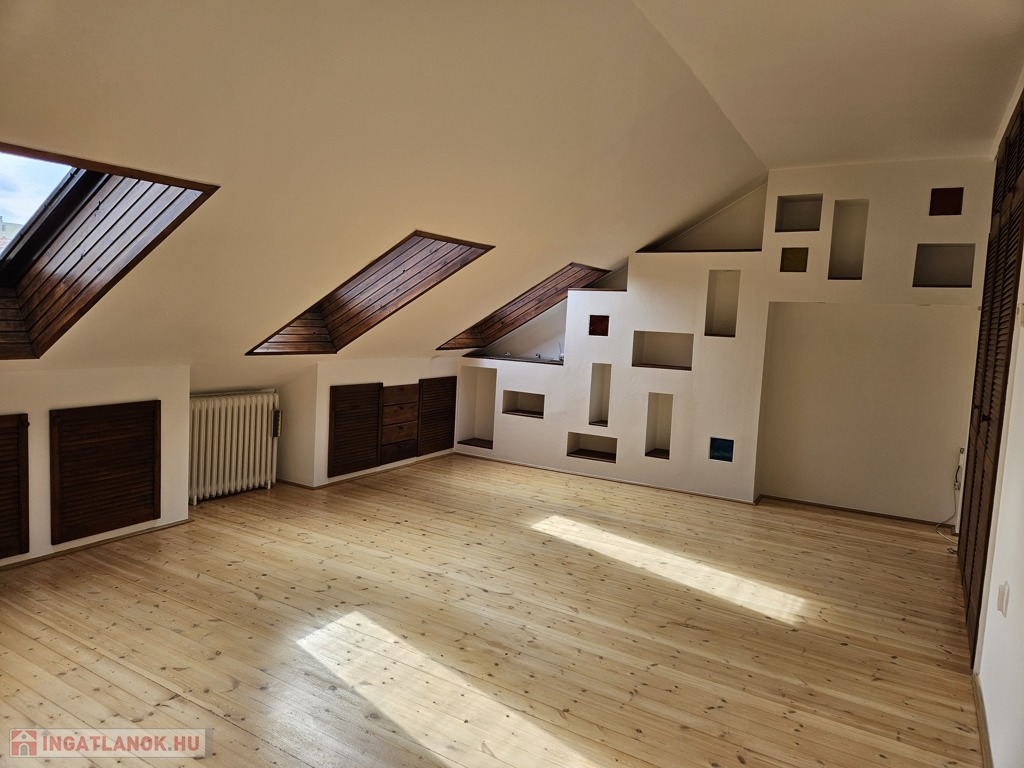 Eladásra kínálunk Miskolc szívében, a Szinvapark mellett, egy tetőtéri, 3 szobás, bruttó 73 m²-es (nettó 43 m²) téglaépítésű lakást, amely egy 4 emeletes társasház 4. emeletén található.