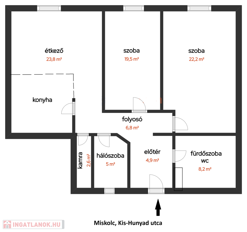 Szoba 1: 22,2 m2
