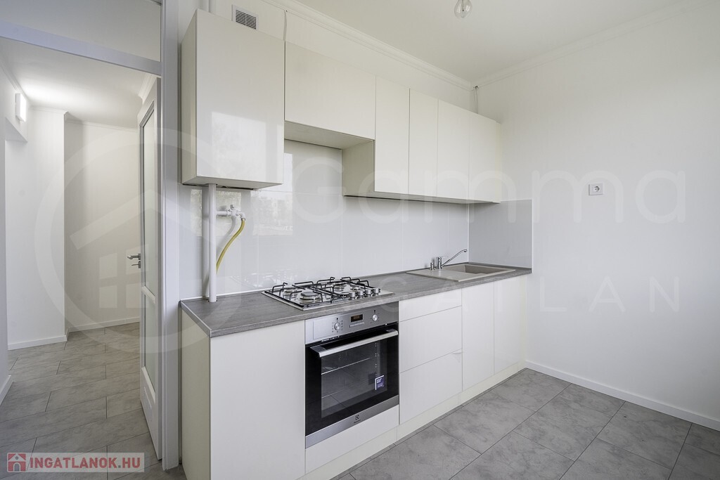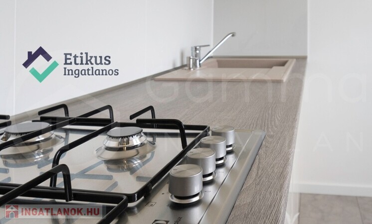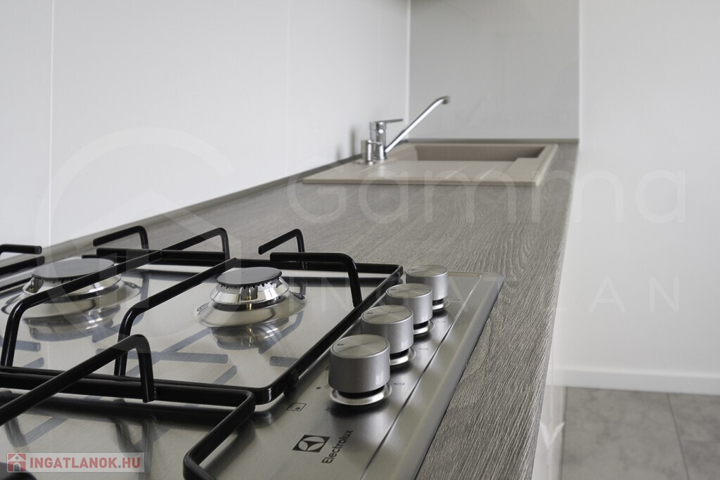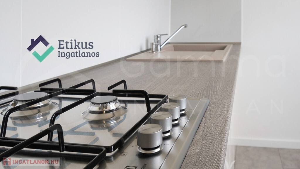 • Új konyhabútor, beépített gáz főzőlappal és elektromos sütővel. A mosogatógép csatlakozásai és a páraelszívó áramellátása kiépítve.