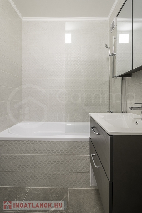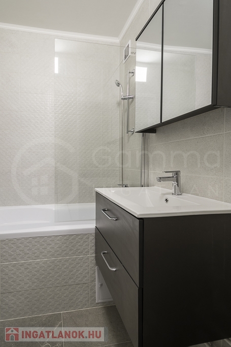 • VIZESBLOKKOK: A fürdőszoba és a WC betonig visszabontva épült újjá. A fürdőben csempe alatti vízszigetelés, a WC-ben falba süllyesztett tartályos rendszer készült.
