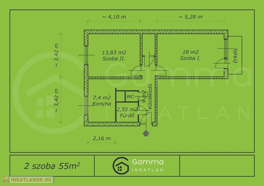 • Frissen glettelt és fehérre festett falak (melyek igény szerint alapozás nélkül azonnal átfesthetők).