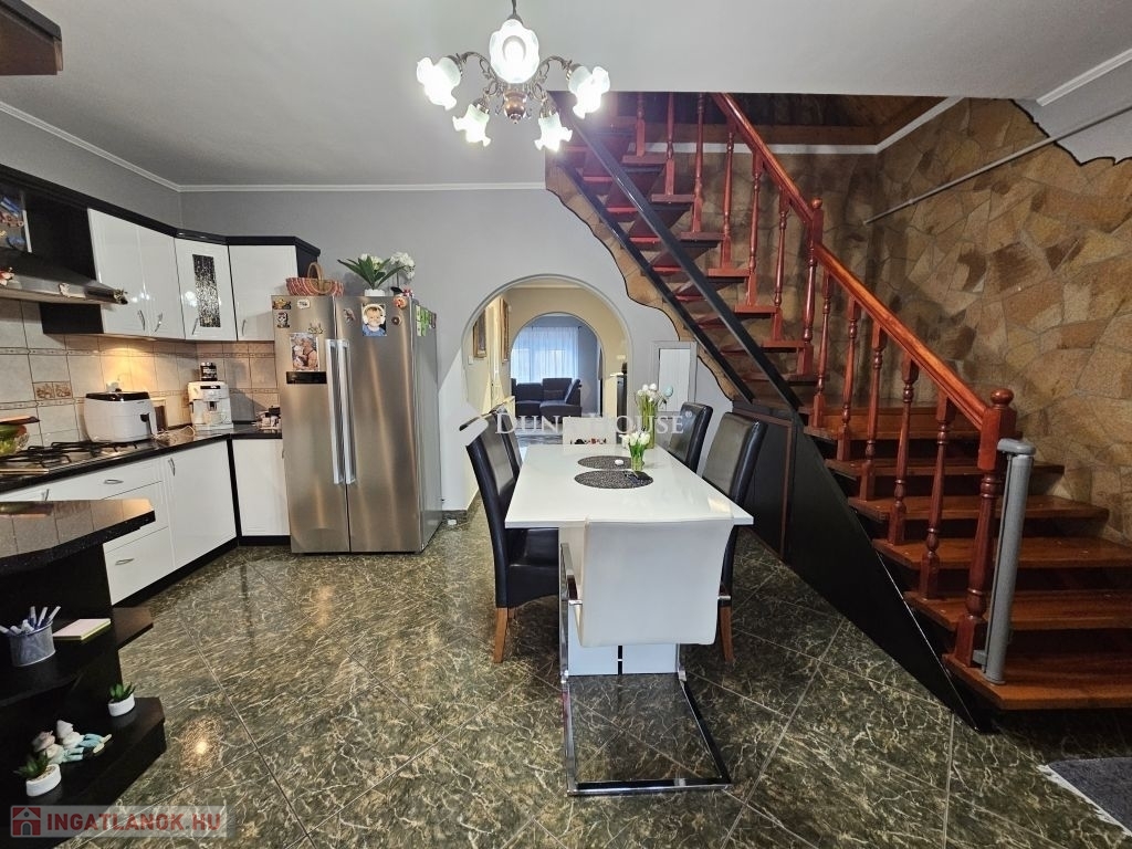 Igényes, teljes körűen felújított 2 szintes sorházi lakás Mohácson – tágas terekkel, télikerttel és külön hobbihelyiséggel!Eladásra kínálunk egy rendkívül jó állapotú, belső kétszintes sorházi lakást Mohácson, a belvárosától mindössze pár perc sétára. Az ingatlant pár évvel ezelőtt teljes körűen felújították, így azonnal költözhető, gondozott és tiszta állapotban várja új tulajdonosát.Az ingatlan főbb jellemzői:-140 m² hasznos lakótér (földszint ~90 m², emelet ~50 m²)- Tágas amerikai konyhás nappali és étkező közel ~40 nm- Világos, tágas, egybenyitott terek jelemzik- Modern konyhabútor gépesítve- Télikert, mely télen- nyáron kiváló teraszként is funkcionál- 3 hálószoba az emeleten, fürdőszobával- Külön hobbihelyiség az udvarban (~30 m²), jelenleg konditeremként funkcionál, de tökéletes hobby helyiség- Külön 12 m²-es tárolóhelyiség- Rendezett, térkövezett udvar, csendes környezet- Parkolás a ház előtt az utcán egy saját letérkövezett beállónMűszaki jellemzők:- Fűtés: gázcirkó, vegyes tüzelésű kazán és 3 darab klíma biztosítja a kellemes hőmérsékletet- Teljesen összközműves (víz, villany, csatorna)- A telek mérete kb. 300 m², a lakóingatlan pedig körülbelül 140 m² (hasznos alapterület)Az ingatlan teljesen tehermentes, rendezett tulajdoni viszonyokkal rendelkezik.Kiknek ajánljuk?Ideális választás lehet nagycsaládosoknak, többgyermekes családoknak, illetve azoknak, akik szeretik a tágas, világos tereket és egy külön életteret szeretnének hobbijaiknak, vállalkozásnak vagy szabadidős tevékenységekhez.Ne hagyja ki ezt a kiváló állapotú, igényes családi otthont Mohács egyik kellemes részén – hívjon bizalommal a megtekintésért!