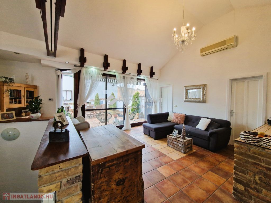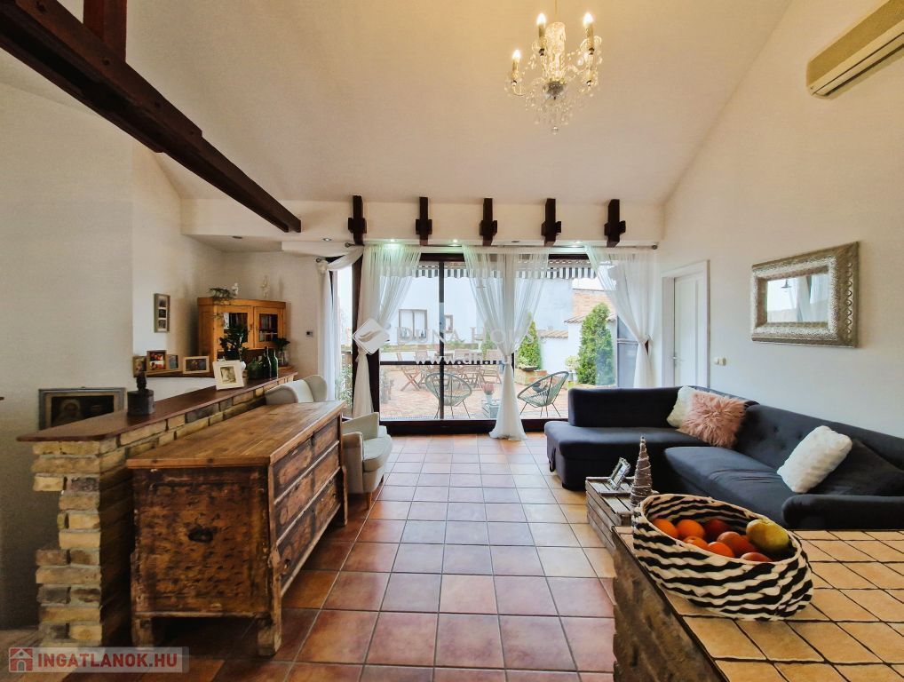 Eladó egy kivételes ingatlan Mohács belvárosában! Jogilag lakás, de jellegében egy önálló családi ház kényelmét nyújtja, közvetlen kertkapcsolattal, teljesen intim atmoszférát teremtve. Az ingatlan egy egylakásos és két üzlethelyiségből álló tarsasházban található.A lakás egyedül használt kis 150m2-es parkosított udvarban található, 105 m2 nagyságú, 3 hálószoba, 2 fürdőszoba, gardróbszoba, és egy amerikai konyhás nappali-étkező található, melyből nyílik egy hangulatos, zárt 45 m2-es terasz.Kellemes hangulatot sugároz az eklektikus stílusú ingatlan, amelyben régi bútorok modern elemekkel keverednek. A hatalmas teraszablakoknak köszönhetően a lakás rendkívül világos, és tágas érzetet kelt. Az ingatlan 20 éve épült, gázfűtéssel és padlófűtéssel rendelkezik, biztosítva az alacsony rezsit. A lakás elosztása, tájolása és elhelyezkedése minden kényelmet biztosít.A lakáshoz külön megvásárolható egy saját 35m2-es dupla garázs.A Spar, iskolák, óvodák, bank és termelői piac mind mind 50-300 m-es körzetben találhatók. A Duna partja mindössze 50 m-re, a természet pedig 2-300 m-re elérhető. Az ingatlan ideális befektetés is, központi elhelyezkedése, mérete és elosztása miatt könnyen kiadható. Az udvar és a garázs pedig ideális megoldást nyújt a parkolásra.