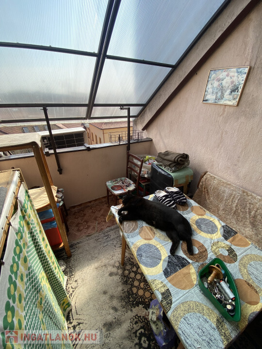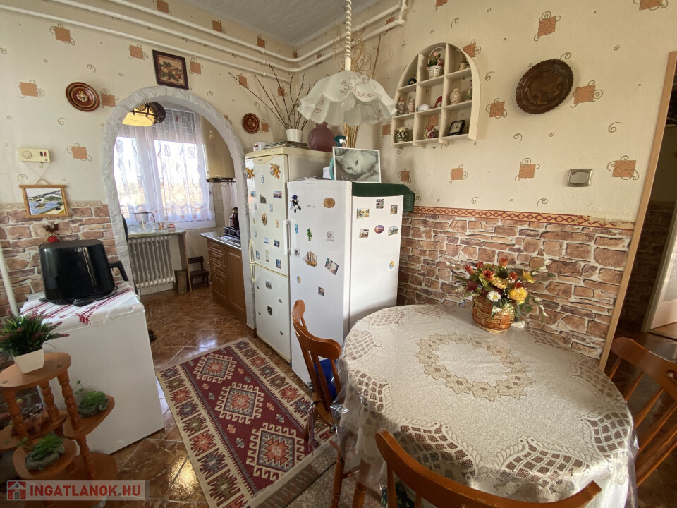 Az ingatlan 2 szoba, konyha, étkező, kamra, fürdő, külön wc elrendezésű, beépített erkéllyel, a pincében tároló helyiséggel, a zárt udvaron belül pedig gépkocsi beállóval.