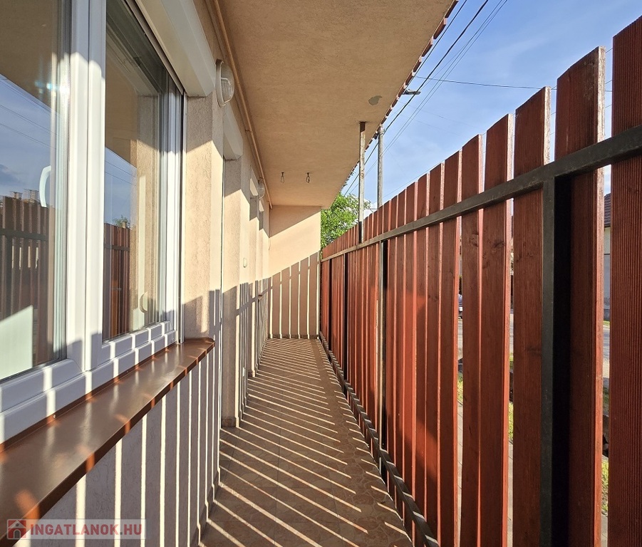 A 8 lakásos társasház 2009-ben épült téglából, szigetelt, műanyag nyílászárókkal, az ablakokon redőnnyel és szúnyoghálóval.