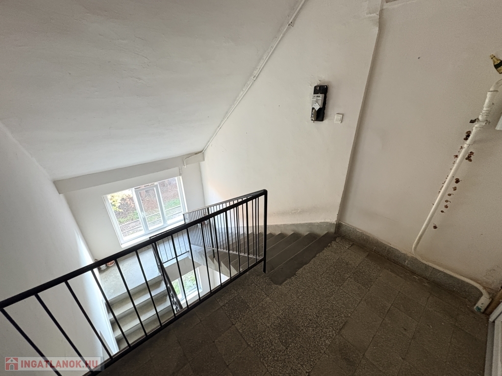 A 47 nm-es 1 nappali +2 fél szobás tégla lakás 1986-ban épült. Az 5 lakásos társasházban a második emeleten helyezkedik el, közvetlen szomszédja nincs. A lakás melletti közel 60 nm-es betonos padlásteret a lakás tulajdonosai használják tárolási célra.