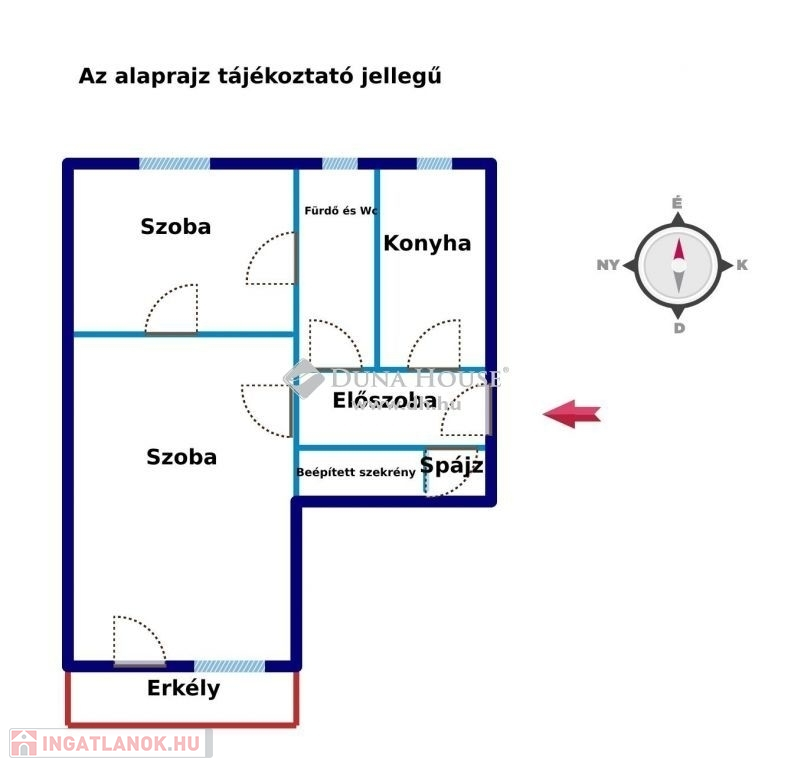 Helyiségek: 2 szoba, konyha, fürdőszoba, közlekedő, erkély