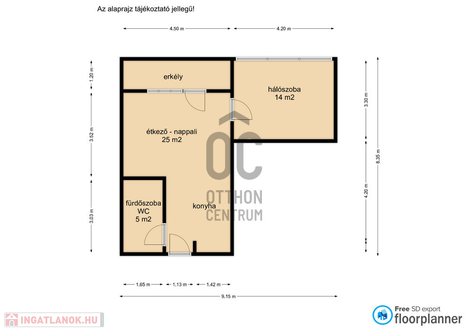 - A lakás 50 m2. Tágas konyha-étkező-nappali, hálószoba, fürdőszoba és erkély van.