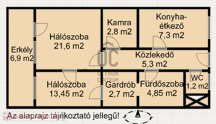 - 2 hálószobával, konyha- étkezővel, gardróbbal, fürdő, külön WC-vel, kamrával, erkéllyel rendelkezik