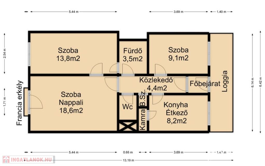 Méret: 62 négyzetméter