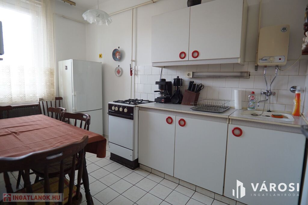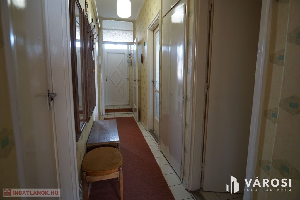 Nagykanizsa belvárosában, a Zrínyi utcában vált eladóvá, ez az átlagos állapotú, 62m2-es, zárt udvarban található, társasházi lakás. Az ingatlanban a tulajdonosok korábban kicserélték az összes homlokzati nyílászárót, műanyag profilszerkezetűre, valamint a főbejárati ajtó is új lett. Ezen munkálatokon kívül nem történt további felújítás a belső lakrészben.