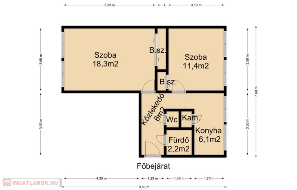 Tájolás: Kelet - Nyugat melynek köszönhetően szép világos a lakrész.