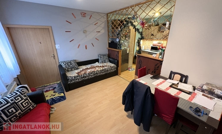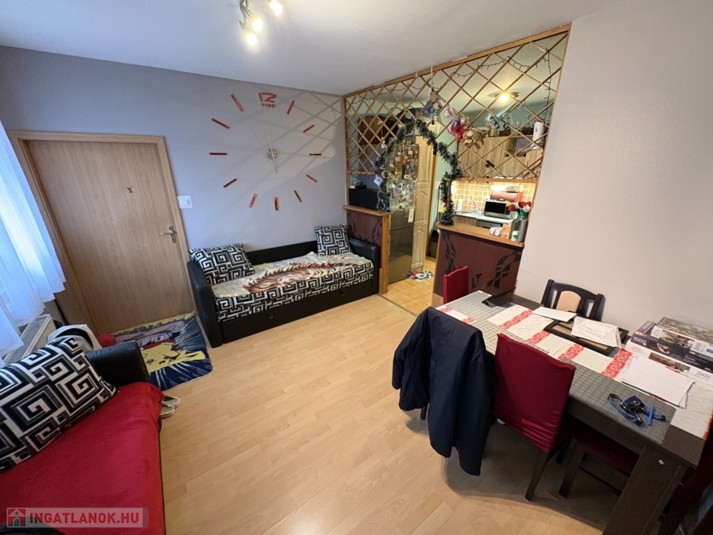 A lakás praktikus elosztású: tágas amerikai konyhás nappalival rendelkezik, amely világos és jól bútorozható életteret biztosít. A fürdőszoba és a WC külön helyiségben található, ami a mindennapi kényelmet szolgálja. A földszinti elhelyezkedésnek köszönhetően könnyen megközelíthető, lépcsőzés nélkül használható, így fiatalok első otthonának, idősebb korosztálynak vagy akár befektetési célra is kiváló választás.