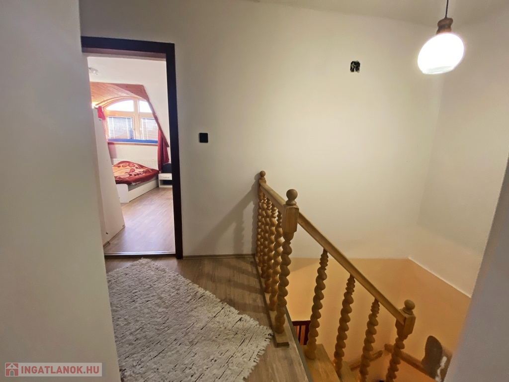 Az ingatlan egy 1990-ben épült társasház harmadik emeletén található, ahonnan a tágas, napfényes déli fekvésű nappaliból csodás panoráma tárul elénk. Az ingatlanban 3 éve történt felújítás, melynek során a felső szint laminált parkettája cserélve lett, a wc-be új burkolat és szaniter került, a konyha és előszoba padlóburkolata szintén megújult. A nappali nyugati oldalát 7 mm-es grafitos hőszigeteléssel látták el. A konyha keleti fekvésű, melyhez kamra is tartozik. Az ablakok még az eredetiek, a bejárati ajtó azonban cserélve lett.