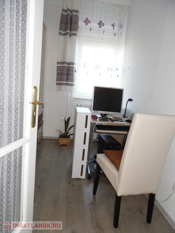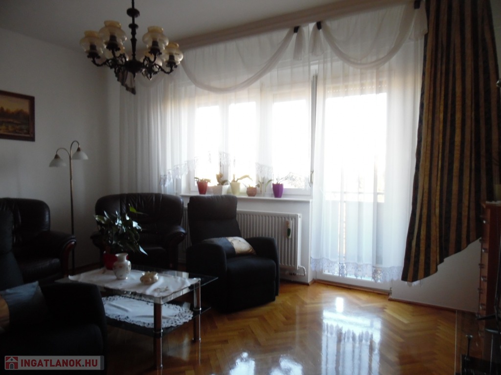 Zala megye, Nagykanizsa, összességében 140m2-es erkélyes lakás eladó. A dél-zalai település északi városrészén található, második emeleti, beépített tetőtérrel rendelkező ingatlan fogadó szintjén 3 hálószoba (melyekből az egyik erkélyes), egy dolgozószoba, gardrób, nappali, közlekedő, konyha, kamra, tároló, fürdőszoba és illemhelyiség, míg a tetőtérben szoba, konyha, közlekedő és fürdőszoba került kialakításra. A nyolcvanas évek elején épült társasház földszintjén a lakáshoz külön tároló is tartozik. A lakás melegéről gázkazán gondoskodik, radiátoros hőleadókkal. Az ingatlan felújítása, korszerűsítése (vezetékek, kazán, burkolatok stb cseréje) az elmúlt évben megtörtént. A kulturált lakóközösséggel rendelkező társasház zárt udvarán az ingatlanhoz gépjármű beálló is tartozik.