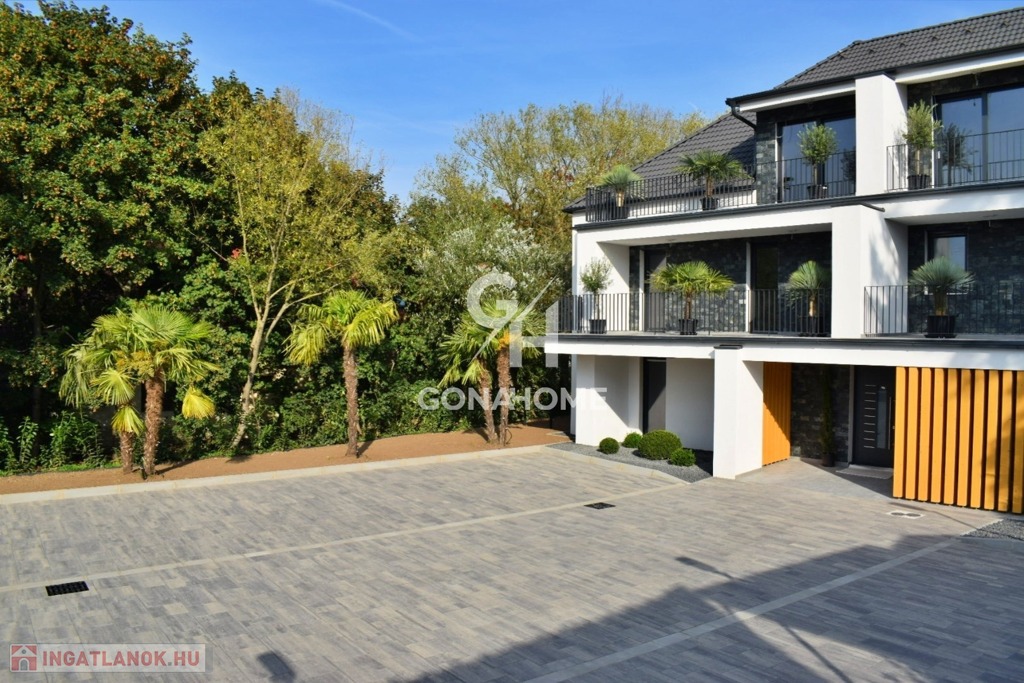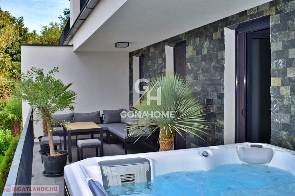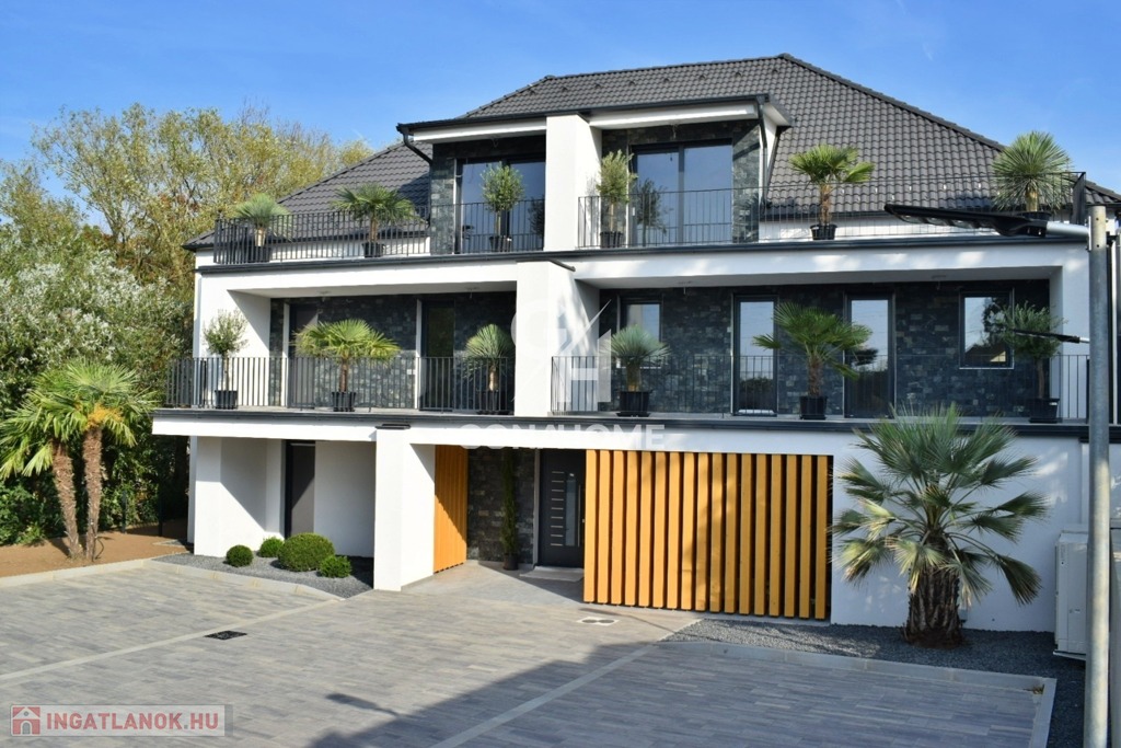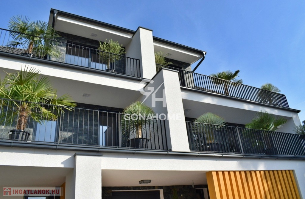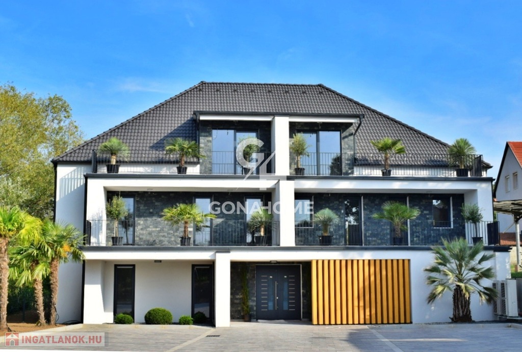 ELADÓ 1. EMELETI, 3 SZOBÁS, DUPLA ERKÉLYES ÚJ ÉPÍTÉSŰ LAKÁS, NEMESVÁMOS ELSŐ MODERN 6 LAKÁSOS TÁRSASHÁZÁBAN, bútorozva, gépesítve, AJÁNDÉK JAKUZZIVAL