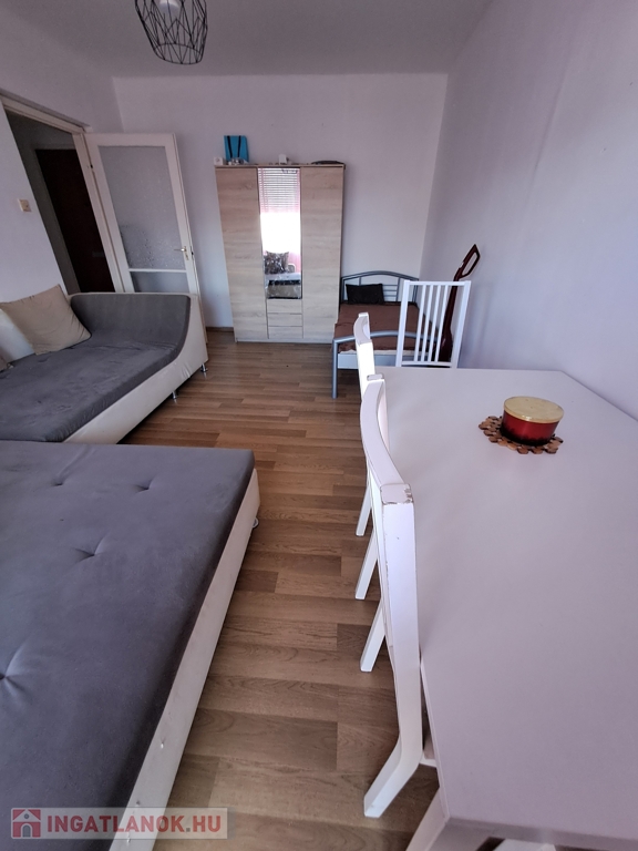 A lakás jó, normál állapotban van, laminált padlóval és csempeburkolattal ellátva, rendezett társasházban található.