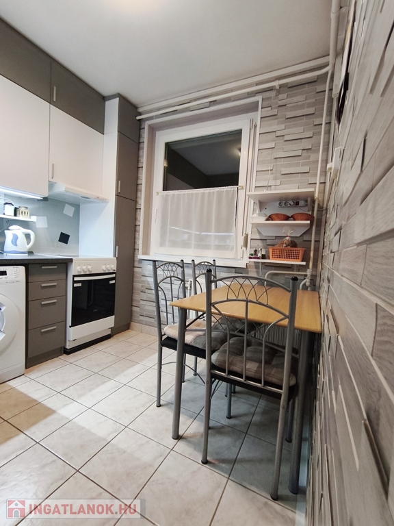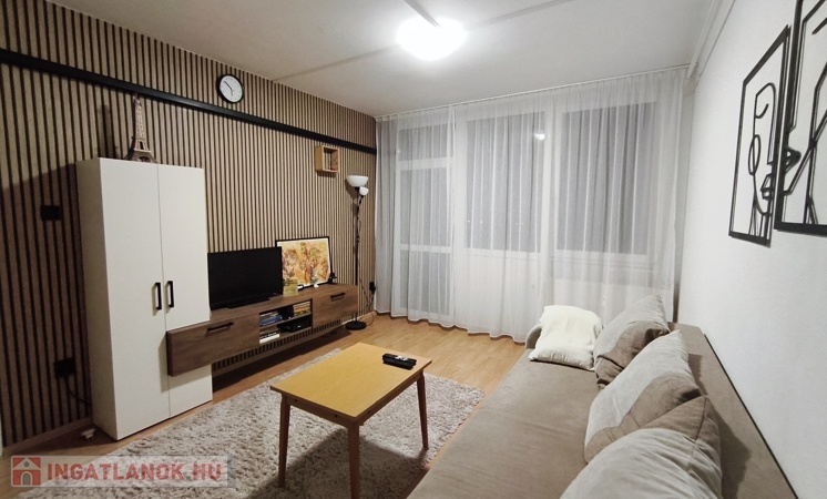Szigetelt, panel építésű, liftes társasház 10. emeletén található, mért távfűtéses, 2 db hűtő-fűtő klímával, új konyhabútorral, beépített szekrénnyel, redőnnyel, rovarhálóval szerelt műanyag nyílászárókkal, laminált padló, járólap burkolatokkal rendelkezik, közös tároló tartozik hozzá.
