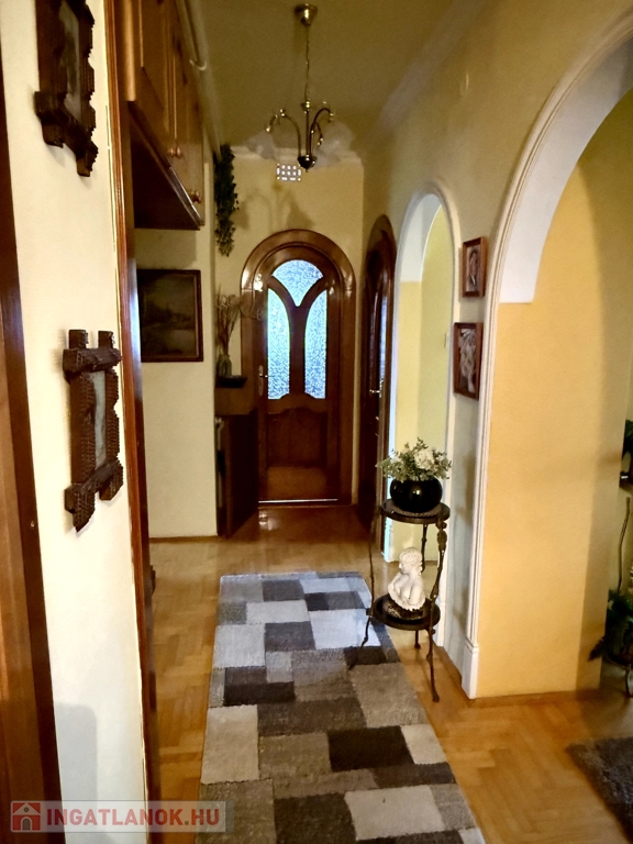 Az ingatlanhoz tartozik egy 21 m²-es belső udvari garázs, tárolórésszel, elektromos kapuval, járólappal burkolva – különösen értékes belvárosi adottság. Ára: 7,9 M Ft