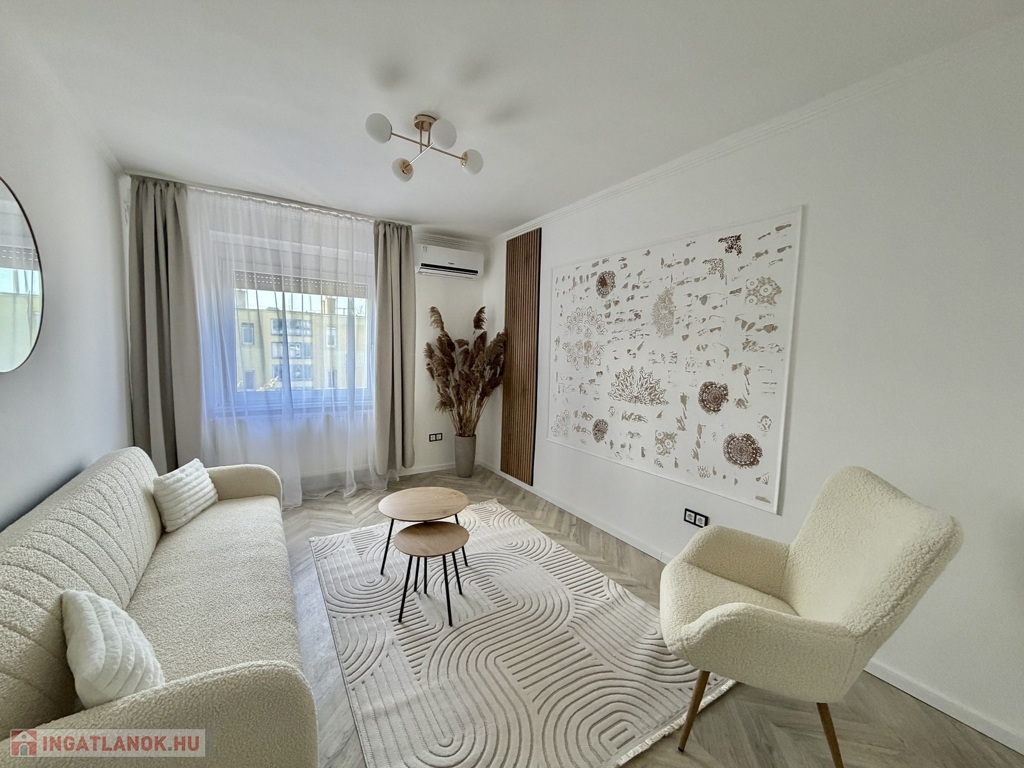 A lakás teljes körű felújításon esett át, elrendezése jól átgondolt: 2 szoba és nappali biztosít kényelmes életteret.