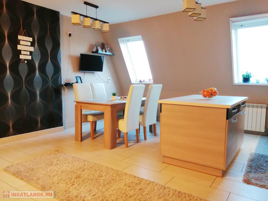 Nyíregyháza Malomkertben a Kórházhoz közel eladó ez a 83m2-es, 2 szoba+ nappalis, étkező konyhás, jó állapotú, egyedi gázfűtéses, ötödik emeleti lakás! Egyéb jellemzők: klíma, 4. emeletig lift, egyedi konyha gépesítve, szép beltéri ajtók, külön fürdő wc, az ablakokon árnyékoló és roló, beépített szekrény, műanyag bejárati ajtó, közös tároló, 20m2 tetőtér beépíthető. Az ingatlan téglaépítésű, szigetelt, a lakás tehermentes. Akár teljes bútorzattal megvásárolható!Az ingatlan azonosítója: 61048Érdeklődni: +36306982324 Az ingatlan azonosítója: 61048 Érdeklődni: +36306982324