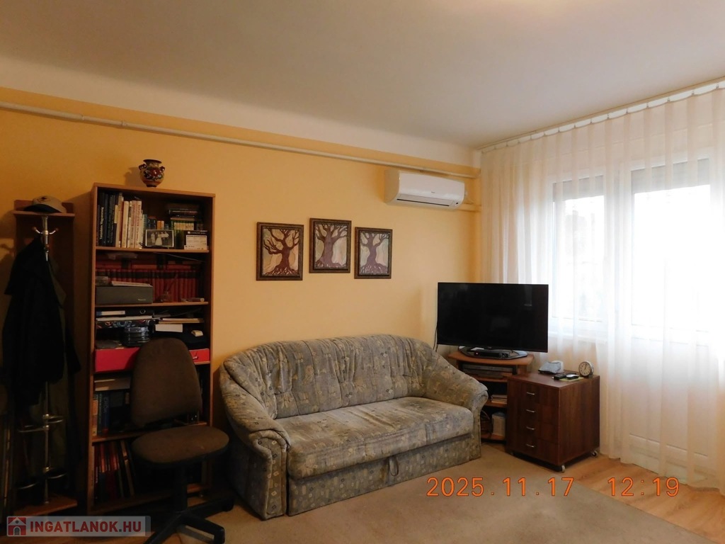 A környék kiemelkedően jó: minden fontos szolgáltatás pár perc sétára található (Városháza 5 p, Színház 2 p, Piac 5 p, busz 1 p).A lakás frissen felújított: új elektromos hálózat, modern bejárati ajtó, klíma, redőnyös műanyag ablakok szúnyoghálóval, valamint új gázkonvektoros fűtés. Két loggia is tartozik hozzá.