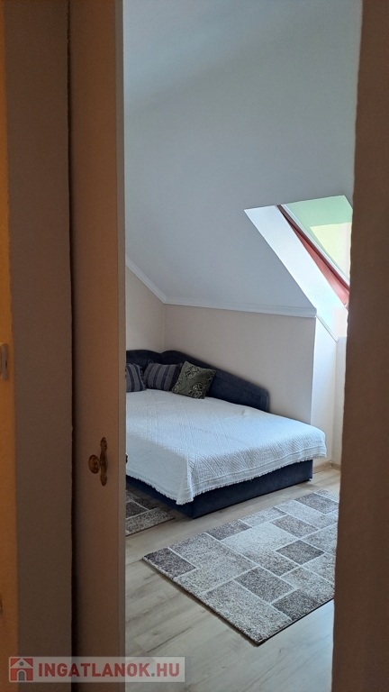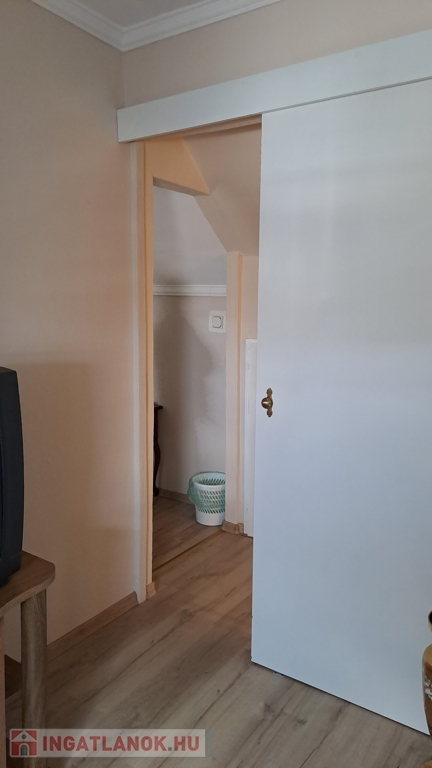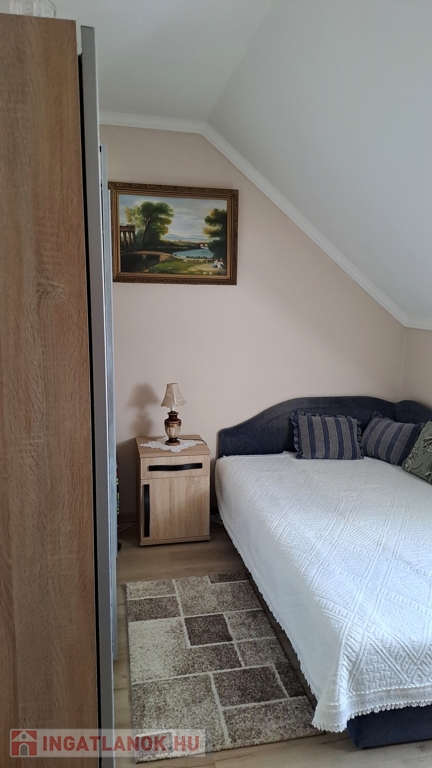 Alsó szint: nappali, 2 hálószoba, konyha + étkező, kamra, fürdőszoba (káddal és zuhanykabinnal), külön WC