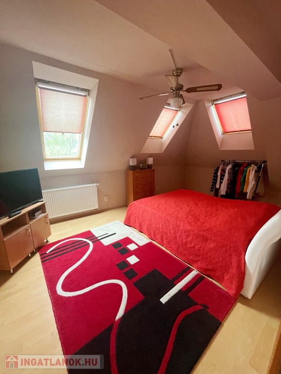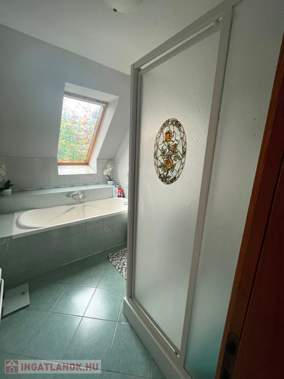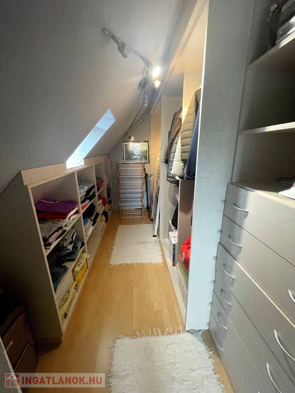 felső szinten: 2 szoba, gardrób, tágas fürdőszoba található.