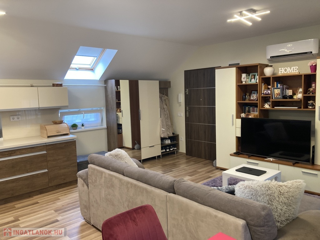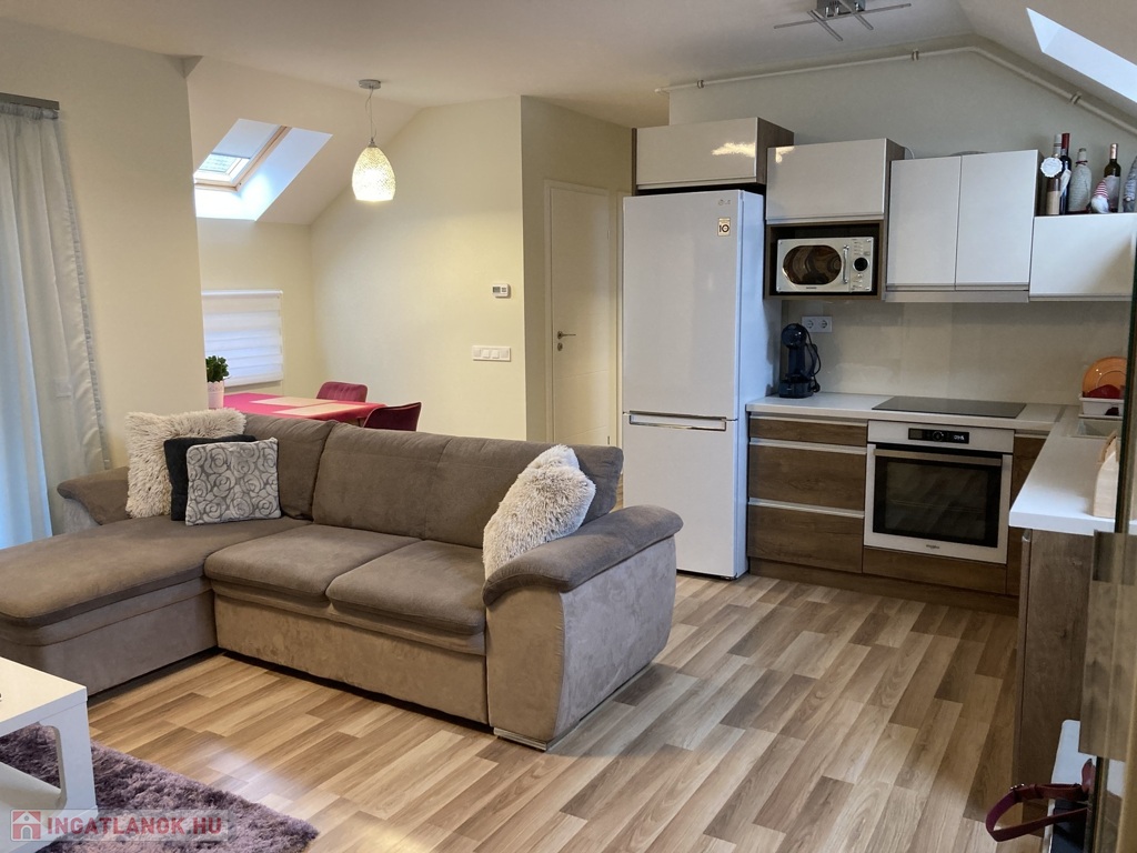 Nyíregyháza Belváros közelében , de közel a Bujtosi Tóhoz eladásra kínálok egy egyedi tervezésű igényes kivitelezéssel minőségi anyagokból épült társasházi lakást, mely 2020-ban épült, 59 m2, erkélyes 2 szoba+gardrob, amerikai konyha nappali elosztással, kelet-nyugat tájolással. Műanyag nyílászárókkal szerelt, redőnyözött, Velux tetőtéri ablakokkal kiegészítve , így egy világos napfényes otthont kapunk. Egyedi, beépített gépesített konyhabútorral , beépített szekrényekkel. Fűtéséről gázcirkó kazán gondoskodik-padlófűtéssel, hűtő-fűtő nagyon kedvező fenntartási költségekkel. Elektromos kapuval védett zárt udvarban saját parkoló tartozik a lakáshoz.Az ingatlan azonosítója: 93672Érdeklődni: +36709442086 Az ingatlan azonosítója: 93672 Érdeklődni: +36709442086