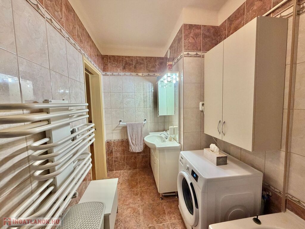 Az ingatlan tégla építésű társasház harmadik emeletén található, mért távfűtéses, klimatizált, műanyag nyílászárós, részben redőnnyel szerelve, laminált padló, járólap burkolatú, saját tároló, közös kerékpártároló tartozik hozzá.