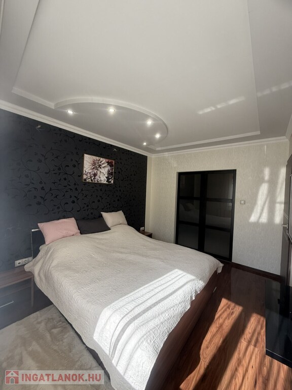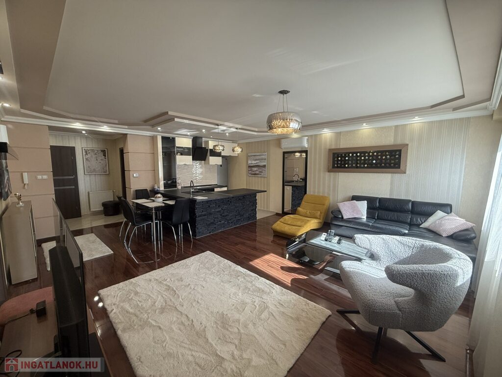 Nyíregyháza belvárosának szívében, a Síp utcán eladásra kínálok egy 1. emeleti, 68 m²-es, 1 szoba + gardróbszoba + nappalis társasházi lakást teljes bútorzattal. Az ingatlanban jelenleg a kisebbik szoba gardróbként funkcionál, de igény szerint könnyedén, kis ráfordítással visszaalakítható külön hálószobává. A lakás különlegessége a fürdőszobában kialakított két személyes szauna.