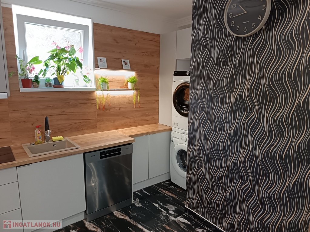 A lakás világos, jól átgondolt elosztású, modern gépesített konyhával, zuhanyzós fürdővel, külön WC-vel, valamint hűtő-fűtő klímával és saját gázfűtéssel felszerelt. A 6 m²-es terasz tökéletes egy reggeli kávéhoz vagy esti kikapcsolódáshoz. Műanyag nyílászárók, redőnyök, egyedi világítás és azonnali költözhetőség jellemzi.