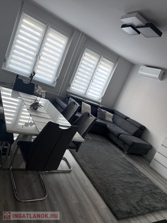 Nyíregyháza belvárosának szívében, a Korzó üzletház közvetlen szomszédságában eladó egy első emeleti, 87 m²-es, tágas kialakítású, három szoba + nappalis, erkélyes lakás, amely vezeték szintig felújított állapotban várja új tulajdonosát. Az ingatlan igényes, egyedi tervezésű, gépesített konyhabútorral, minőségi burkolatokkal és prémium beltéri ajtókkal rendelkezik, valamint három darab klímaberendezés gondoskodik a komfortos hőérzetről. A műanyag nyílászárók redőnnyel és reluxával felszereltek, a szigetelt, téglaépítésű társasház pedig rendezett, csendes környezetet biztosít. A lakásban négy nagyméretű, beépített szekrény található, melyek a vételár részét képezik. Fenntartási költsége rendkívül kedvező, a közös költség mindössze 7.000 Ft, ami a nagy alapterülethez képest különösen előnyös. Kiváló elhelyezkedésének köszönhetően nemcsak otthonnak ideális, hanem irodai használatra vagy befektetési célra is tökéletes választás, hiszen a belvárosi lokáció hosszú távon is értékálló.Az ingatlan azonosítója: 99582Érdeklődni: +36702560693 Az ingatlan azonosítója: 99582 Érdeklődni: +36702560693