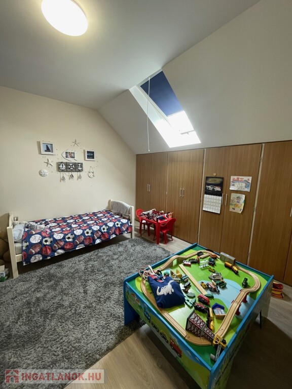 Felső szinten: 3 szoba, fürdőszoba-wc található.