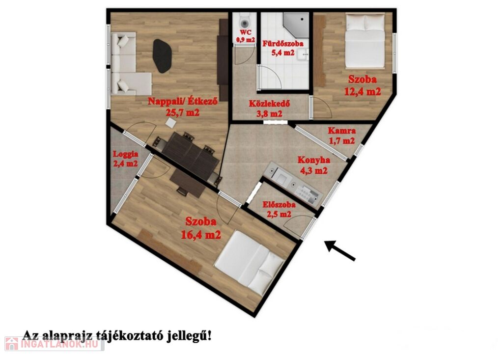 A világos, jó elosztású ingatlan kisebb méretű loggiával rendelkezik, amely tovább növeli a lakás élhetőségét. Egy tisztasági festést követően azonnal költözhető, így akár rövid határidővel is birtokba vehető. Elhelyezkedésének és adottságainak köszönhetően nemcsak otthonnak, hanem irodai vagy egyéb vállalkozási célra is kiváló választás lehet.