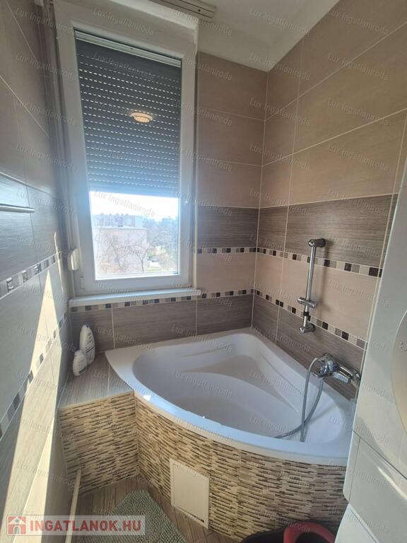- Fürdőszobában sarokkád, törölköző szárítós radiátor