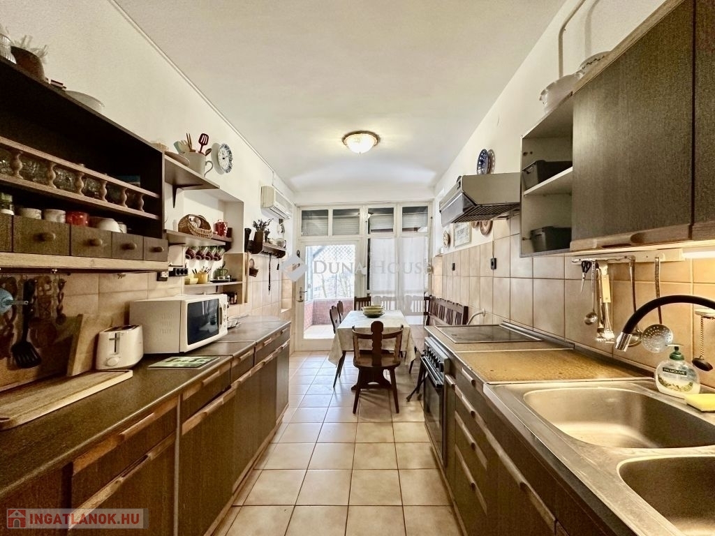 PécsMecsekoldal déli részén eladó kertkapcsolatos, panorámás otthon!A Szurdok dűlő csendes, városhoz közeli környezetében kínálunk megvételre egy 106 nm-es lakóterű ingatlant, melyhez saját kertkapcsolat és napos, panorámás terasz tartozik.Az otthon 3 különálló hálószobával és egy tágas közel 40m2-es nappalival rendelkezik, így ideális családi élettér kialakítására.A külön konyha közvetlen kijárattal kapcsolódik a kerthez, a fürdőszoba mellett vendég WC is rendelkezésre áll. A komfortot padlófűtés és klímaberendezés biztosítja.A lakásban rengeteg fantázia rejlik, átalakítással egy igazán modern, mai igényeknek megfelelő otthon varázsolható belőle.2db tároló és 1db garázsbeálló is tartozik az ingatlanhoz.Nyugalom, zöld környezet és városi közelség egy helyen kiváló választás hosszú távra.