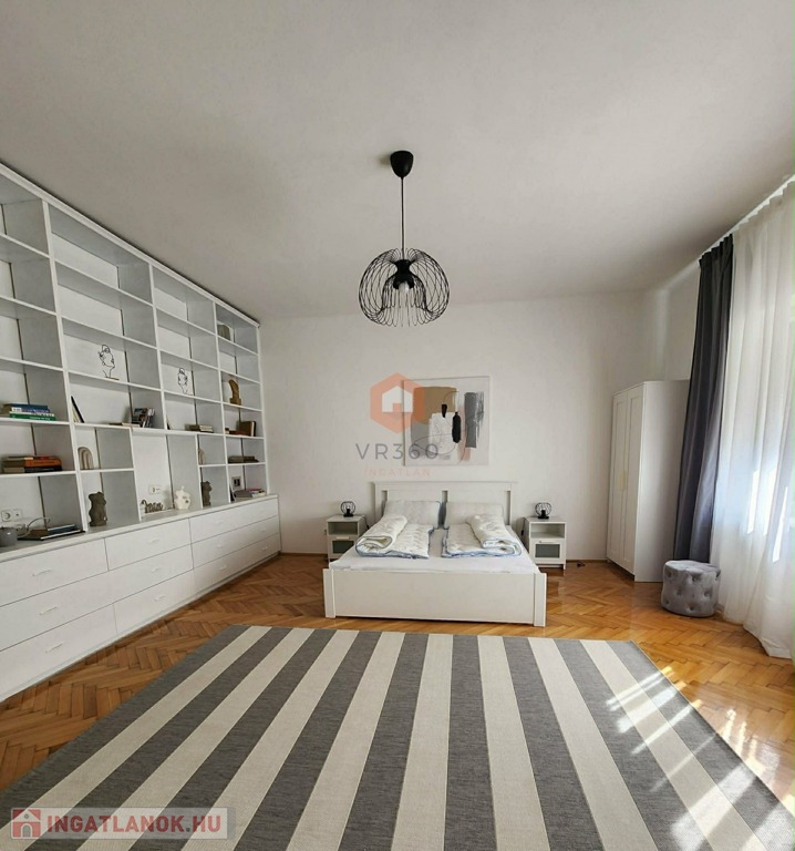 A gyönyörű lakás rendkívül tágas, a tér nagyságát a kb. 3 m-es belmagasság is fokozza.