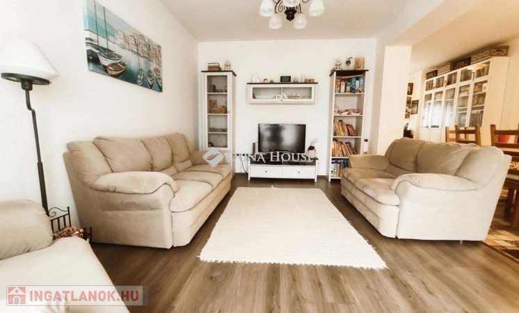Eladásra kínálunk egy egyszintes, 130m2-es , tégla szerkezetű, kertkapcsolatos lakást, amely nem csak egy lakóhely, hanem egy otthon, ahol az élet minden szépsége kiteljesedhet. A ház 1 nappalival és további 4 szobával rendelkezik, amelyek tágasak és világosak, köszönhetően a jól megtervezett elrendezésnek.Az ingatlan a kertkapcsolatnak köszönhetően különleges lehetőséget kínál a szabadtéri tevékenységekhez. A kert gondosan ápolt, tökéletes hely a kikapcsolódáshoz, a gyerekek játékára vagy akár egy családi barbecue est szervezésére.Belépve a tágas előszobába, azonnal érezhető a nyugodt, családias hangulat, amit a természetes fény és a modern, mégis időtálló belső kialakítás is erősít. A nappali a központi helyiség, ahol a család és a barátok összegyűlnek, hogy kellemes időt töltsenek együtt. A konyha és az étkező egy légtérben helyezkedik el, ideális helyszín a közös főzésekhez és étkezésekhez.