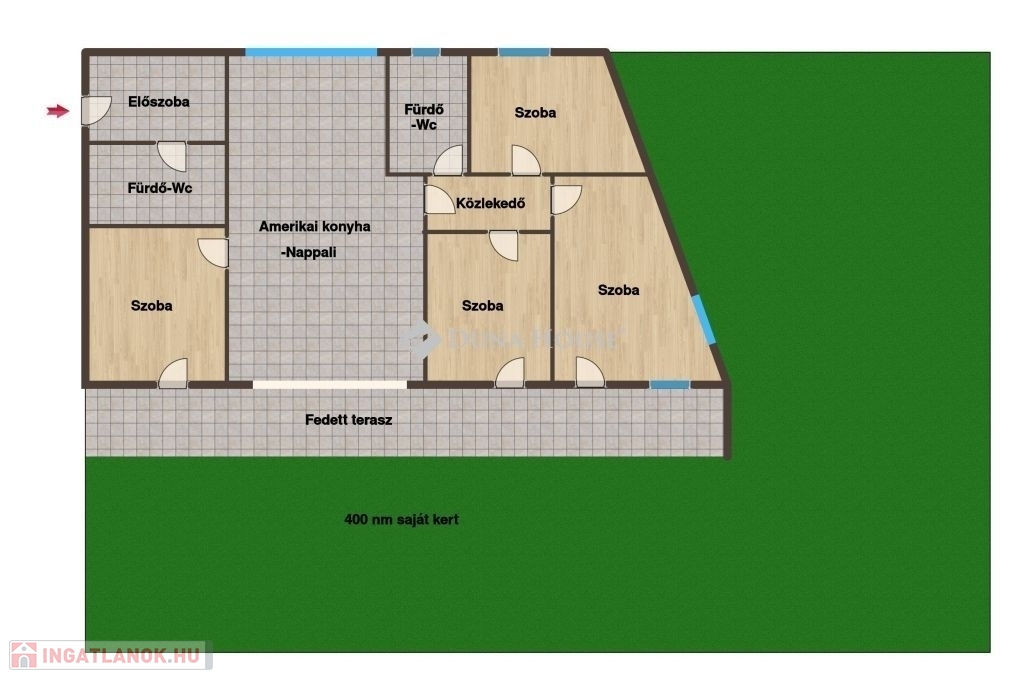 400 m² saját kertkapcsolat
