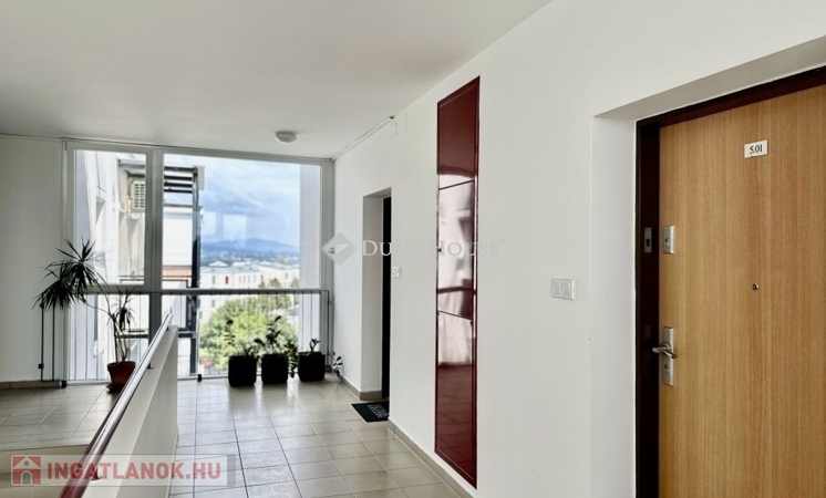 Eladó panorámás, modern lakás tetőterasszal Fellbach lakópark, PécsExkluzív lehetőség a közkedvelt Fellbach lakóparkban: eladásra kínálunk egy kiváló elrendezésű, világos, modern kialakítású téglalakást, páratlan kilátással a Mecsekre. Az ingatlan egy lifttel ellátott társasház legfelső szintjén található, igényes, rendezett környezetben.Főbb jellemzők:Tágas amerikai konyhás nappaliNagyméretű tetőterasz elektromos árnyékolóvalKét külön nyíló hálószobaFürdőszoba + külön WCMinden helyiség klimatizáltSaját, zárható tárolóTávfűtés egyedi mérővelParkolás közvetlenül az épület előtt, mindkét irányból megközelíthetőenA lakás modern burkolatokkal, stílusos belsőépítészeti megoldásokkal, kiváló természetes fényviszonyokkal rendelkezik. Ideális választás azok számára, akik igényes, jól megközelíthető, nyugodt környezetben keresnek prémium ingatlant. További információért és megtekintésért keressen bizalommal!