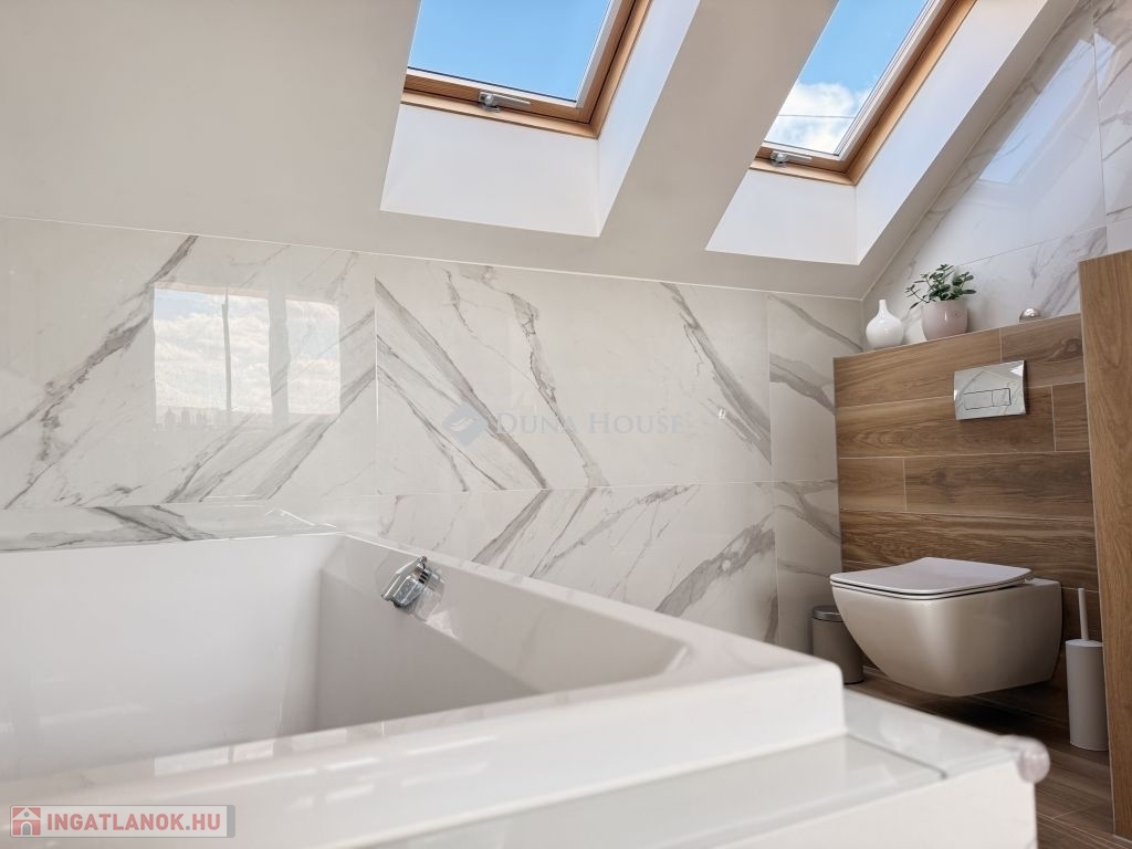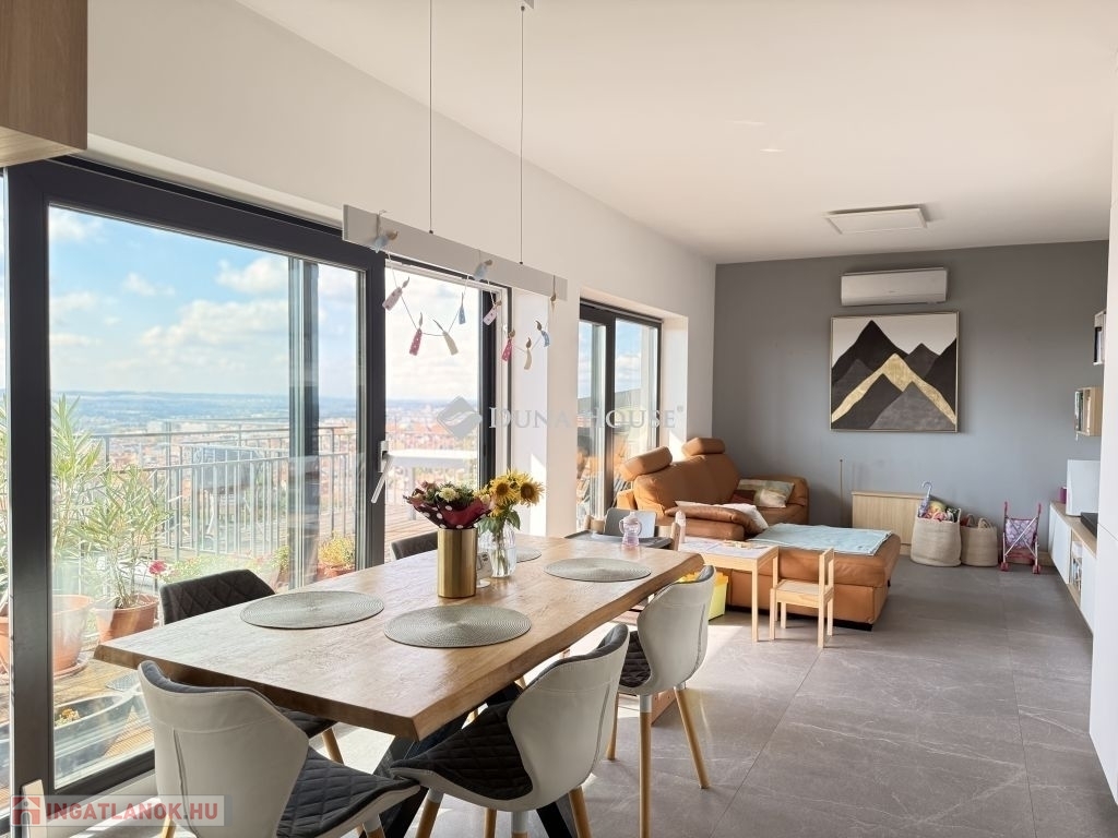 Pécs-Mecsekoldal jól megközelíthető részén, a Havihegyen eladó egy 2021-ben épült, ÖRÖKPANORÁMÁS, belső kétszintes, 80 m2 lakótérrel rendelkező, amerikai konyha nappali+ 2 hálószoba, fürdő-wc, vendég wc elosztású lakás dupla terasszal(+60m2), 4 m2-es tárolóval, 19m2-es teremgarázshellyel és akár a teljes berendezéssel együtt!A két lakásos társasház prémium minőségben került kivitelezésre, falai 30-as Porotherm klíma téglából épültek és 10 cm-es grafitos szigetelést kaptak. Fűtése kondenzációs kombi kazánról padlófűtéssel üzemeltethető és rendelkezésre áll szintenként egy-egy GREE 3,5kW-os hűtő fűtő klíma is.Extrák:- vízlágyító és víztisztító berendezés- elektromos redőnyök szúnyoghálóval- süllyesztett tolóajtó- Hörmann elektromos garázskapu- Servo-drive(önzáró) konyhabútor, beépített AEG gépekkel, borhűtő- magas minőségű burkolatok, egyedileg gyártott beépített bútorok, Villeroy & Boch szaniterek, Hansgrohe szerelvények- Szél&fényérzékelős automata napellenző- jakuzzi kiállás- riasztó előcsövezésAz ingatlan gyorsan költözhető!