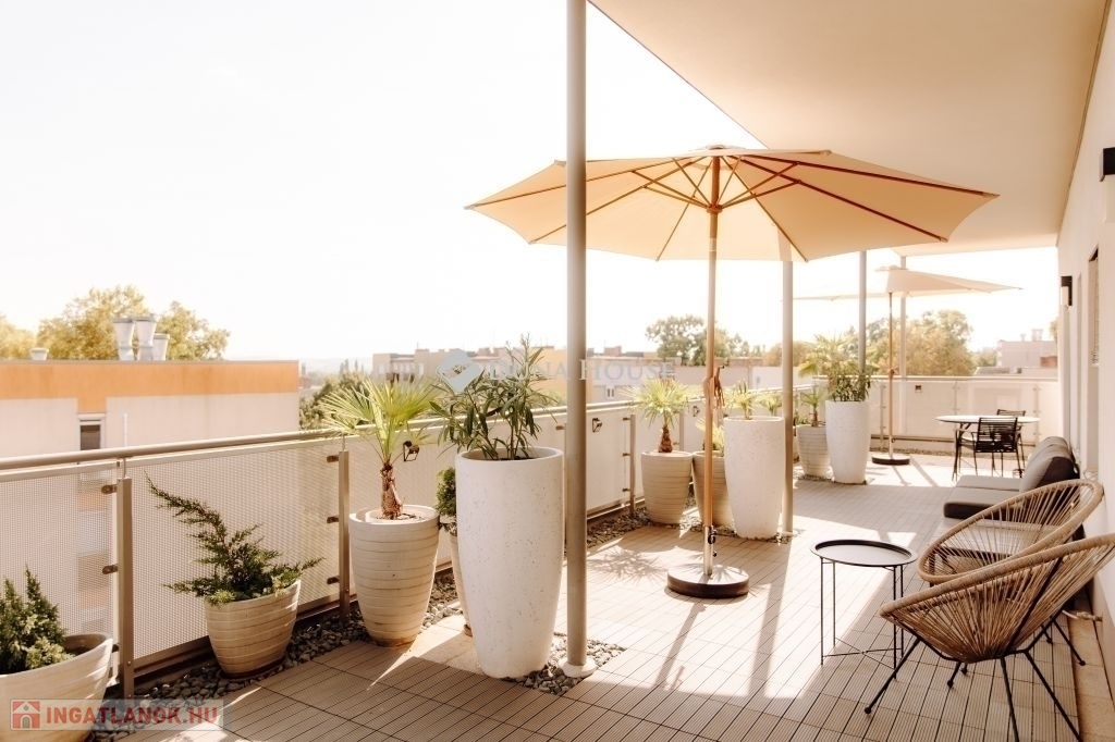 PRÉMIUM PENTHOUSE LAKÁS ELADÓ PÉCS BELVÁROSÁHOZ KÖZEL KÉT KÜLÖN LAKÁSSAL, TELJES BERENDEZÉSSEL, AZONNALI HOZAMMAL!Pécsett, a belvárostól mindössze pár perc sétára, a 2017-ben átadott Megyer Ház lakópark 4. emeletén kínálunk megvételre egy 70 m²-es, tehermentes penthouse lakást, amelyet két különálló lakássá alakítottak.Az ingatlanhoz nagyméretű fedett terasz is tartozik (30 m² és 20 m²), melyek mindkét nappaliból közvetlenül megközelíthetők.--KIEMELT ELŐNYÖK:Jelenleg mindkét lakás bérbe adva, teljes kihasználtsággalAzonnali, stabil és rendkívüli hozamA teljes berendezés a vételár részét képezi az ingatlan azonnal tovább üzemeltethetőKét külön bejáratú, önálló lakás maximális kihasználhatóság--Főbb jellemzők:Mindkét lakás: amerikai konyhás nappali + fürdőszoba WC-vel + teraszPrémium minőségű kivitelezés, letisztult designEmelt szintű, gépesített konyhákElektromos zsalúziaNagyteljesítményű klímák minden helyiségben (hűtés-fűtés)Távfűtés egyedi mérésselAlacsony fenntartási költség1 db utcai felszíni parkoló tartozik a lakáshoz2 további parkoló vásárolható-Lokáció:Belváros közeli, exkluzív környezetKiváló közlekedés minden iránybaVilágos, napfényes lakás egész nap--Befektetők figyelem!Az ingatlan jelenlegi működése és kialakítása révén azonnal bevételt termel, így ideális választás azok számára, akik kockázatmentes, kész befektetést keresnek Pécs egyik legkeresettebb lokációjában.További információért és megtekintésért várom hívását!