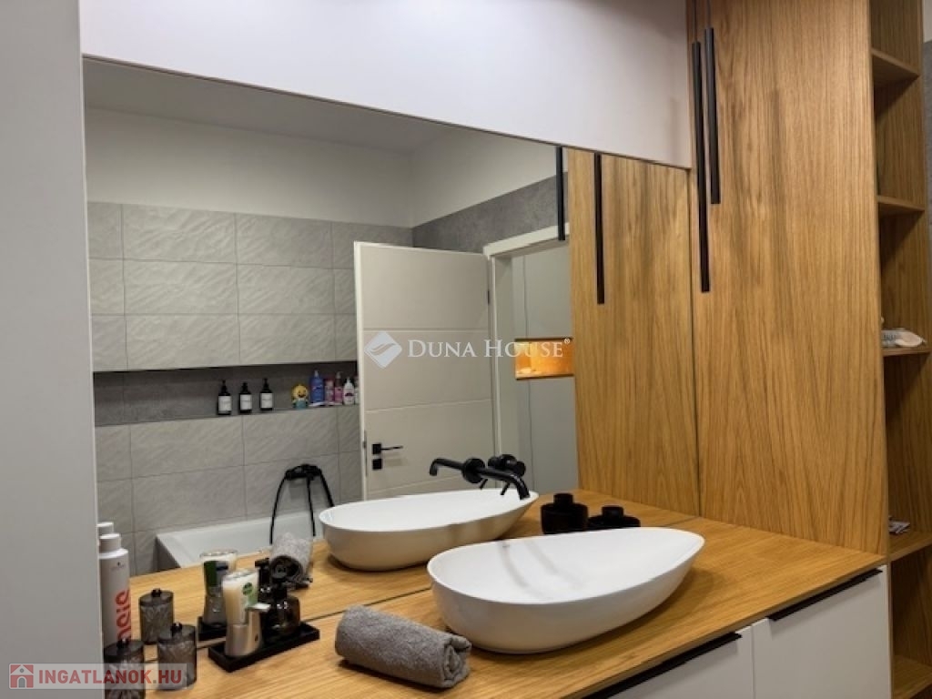 Eladó egy lenyűgöző, téglaépítésű ingatlan, mely egy több mint 3 300 m²-es, ős fenyőkkel övezett telekkel büszkélkedhet. A két társasház osztozik ezen a gyönyörű zöld területen, amely közös használatú medencével, panoráma tetőteraszokkal, valamint egy frissen telepített szolár zuhannyal kínál kikapcsolódási lehetőségeket a lakóknak. Az ingatlan, 3 hálószobás, 2 fürdővel és egy amerikai konyha-nappalival, illetve teraszkapcsolattal rendelkezik. A lakáshoz egy saját kertkapcsolat tartozik, ahonnan közvetlen lejutás biztosított a medencéhez . Ezenkívül 2 db tároló és egy teremgarázs hely is tartozik a lakáshoz, melynek az ára 15 Mft. Ez a páratlan ingatlan ideális választás azok számára, akik nyugalmat és természetközelséget keresnek, mindezt egy modern és kényelmes otthonban, ahol a közösségi terek és a környezetbarát megoldások különleges hangsúlyt kapnak. Ha érdekli ez az egyedülálló lehetőség, ne habozzon kapcsolatba lépni velünk további információkért és egy személyes megtekintésért.Az eladásra kínált lakásunk igazi ritkaság, hiszen számos extra jellemzővel rendelkezik. A medence és a panoráma tetőteraszok exkluzív élményt nyújtanak, lehetőséget adva arra, hogy a lakók a mindennapok során is élvezzék a természet közelségét és a környező táj látványát.