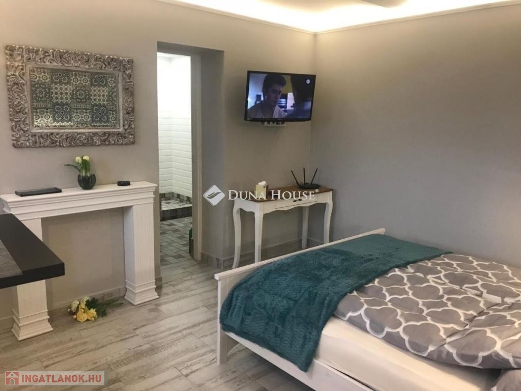 Eladó frekventált elhelyezkedésű stúdió apartman Pécsett, az Aradi vértanúk útján, a belváros közvetlen közelében, a Székesegyház felett.Az ingatlan 27 m² alapterületű, önálló lakás, amely korábban rövid távú bérbeadásra volt hasznosítva, elhelyezkedése miatt stabil befektetési lehetőséget kínál.Elhelyezkedés és adottságok:-kiemelt belvárosi lokáció-örökpanoráma a Pécsi Székesegyház irányába-turisztikailag frekventált környezet-minden fontos városi infrastruktúra gyalogosan elérhető-az épületen belül kissé lesüllyesztett szinten helyezkedik el, a bejárati szinttől két lépcsőfokkal lejjebbFőbb jellemzők:-alapterület: 29 m²-stúdió kialakítás-jó állapot-klímaberendezés-elektromos fűtés-teljes berendezéssel eladó, a vételár a teljes bútorzatot és felszerelést tartalmazza-kiváló kiadhatóság-rövid és hosszú távú bérbeadásra egyaránt alkalmas(A lakással szemben egy további, külön helyrajzi számon nyilvántartott stúdió apartman is található, amely szintén megvásárolható.A két ingatlan együttes megvásárlása esetén az irányár 69 000 000 Ft.)Rezsi: 15000 Ft/hóKözös Kltsg: 6000 Ft/hó
