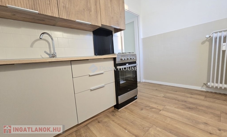 A felújítás a következőket érintette friss festés, mázolt ajtók és radiátorok, új laminált padló, új konyhabútor, valamint megújult beépített szekrényfrontok. Az előszoba tágasabb lett, a WC teljesen felújított, a fürdőszoba átlagos állapotú.